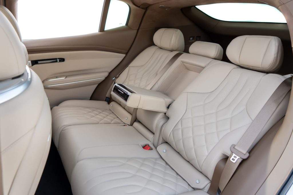 O interior traz central multimídia de 14,6 polegadas com Android Auto e Apple CarPlay sem fio, além de painel digital de 8,9 polegadas. Os bancos dianteiros contam com ajustes elétricos, memória, aquecimento, ventilação e função massagem. Há ainda ar-condicionado automático, iluminação interna configurável e sistema de som com alto-falantes integrados ao assento do motorista.