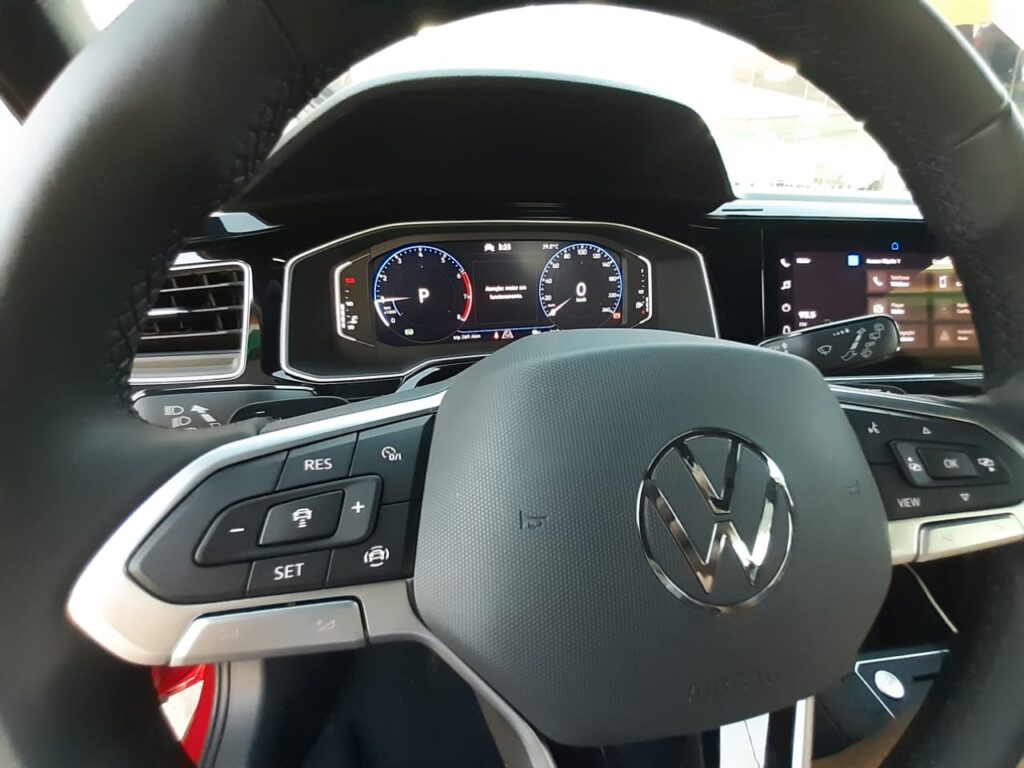 Saindo da concessionária, na versão Highline, já começamos a perceber o porquê que a procura é crescente. O Nivus esbanja em conforto, design e segurança. O banco parece abraçar você e logo dá para perceber que a suspensão está muito bem acertada. Quando o quesito é segurança, a gente destaca os 6 airbags, piloto automático adaptativo (capaz de acelerar ou frear o veículo de acordo com a distância programada pelo motorista), controles de estabilidade e de tração, bloqueio eletrônico do diferencial e assistente de partida em rampas.